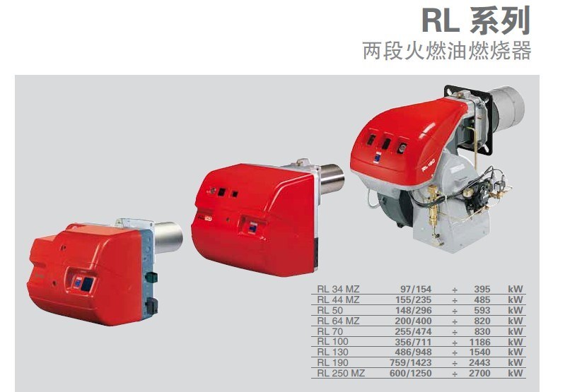RL系列燃燒器的出力范圍為95~2443KW,適用于各種熱水和過熱水,熱風(fēng)和蒸汽發(fā)生器,及導(dǎo)熱油爐。